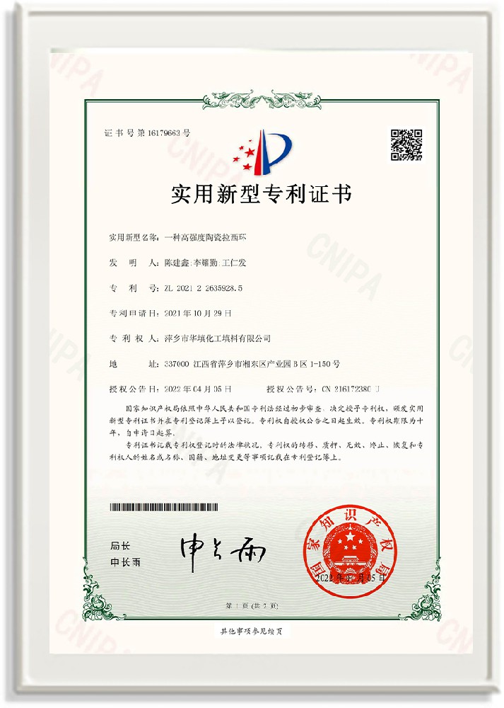 萍鄉(xiāng)市華填化工填料有限公司,位于320國(guó)道、109國(guó)道、浙贛鐵路、昌金高速公路貫穿其中,交通便利,是江西西部一顆燦爛明珠,創(chuàng)建于20世紀(jì)70年代初期,是中國(guó)石油天然氣股份有限公司“能源一號(hào)網(wǎng)”會(huì)員企業(yè)、中國(guó)石化物資采購(gòu)電子商務(wù)網(wǎng)絡(luò)和中國(guó)海洋石油總公司采辦業(yè)務(wù)系統(tǒng)成員單位,是上海大學(xué)江西材料基因組工程產(chǎn)業(yè)研究院工業(yè)陶瓷產(chǎn)業(yè)創(chuàng)新聯(lián)盟基地,且通過(guò)ISO9001:2015質(zhì)量管理體系、ISO14001:2015環(huán)境管理體系、ISO45001:2018職業(yè)健康安全管理體系認(rèn)證的化工填料生產(chǎn)企業(yè)。公司擁有陶瓷、塑料、金屬填料、催化劑、活性氧化鋁、分子篩等產(chǎn)品生產(chǎn)線,現(xiàn)有固定資產(chǎn)3616萬(wàn)元,占地面積3.8萬(wàn)平方米。公司具有悠久的生產(chǎn)歷史、雄厚的技術(shù)力量和先進(jìn)的生產(chǎn)工藝設(shè)備,可生產(chǎn)工業(yè)瓷球(支撐劑)、陶瓷、金屬、塑料質(zhì)的規(guī)整、散堆化工填料及分子篩、催化劑、生化濾料、活性氧化鋁、石化助劑、活性炭、環(huán)保材料、耐火材料等系列的200多種規(guī)格型號(hào)產(chǎn)品。